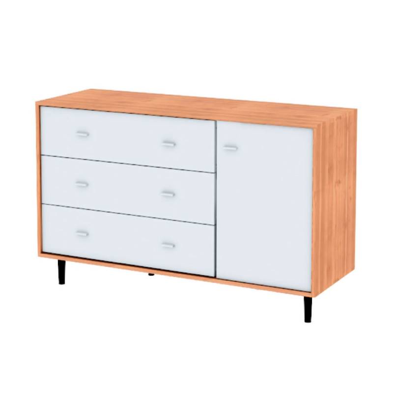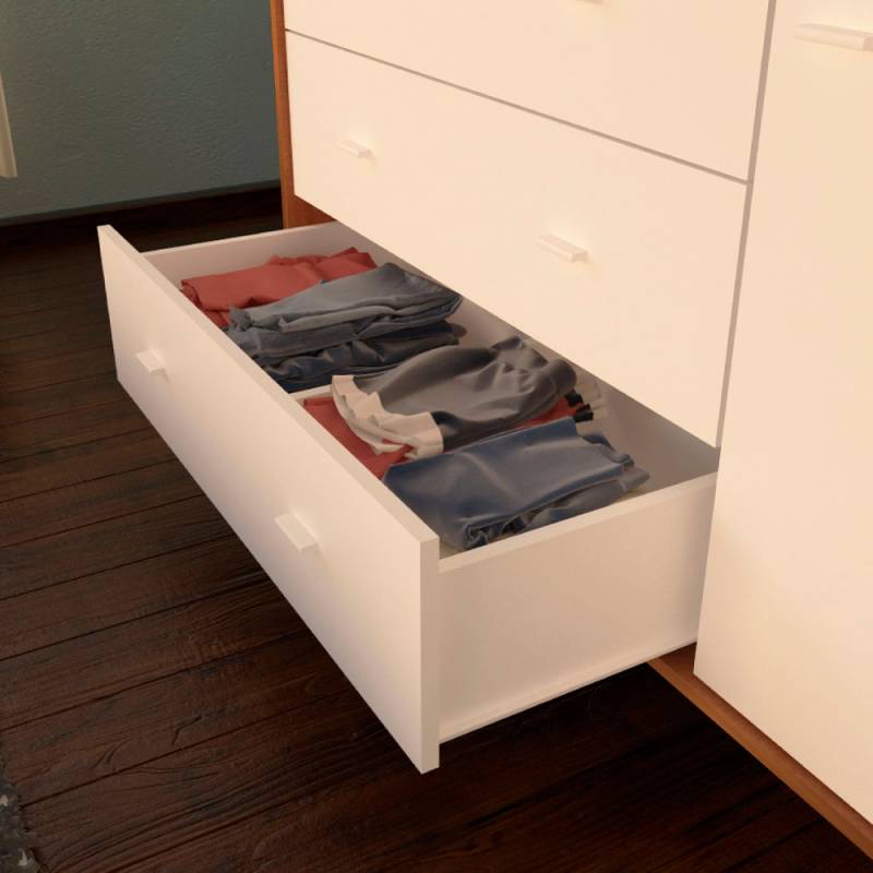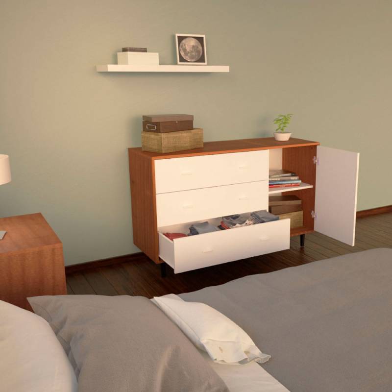 Esta cómoda le da a tu cuarto un toque de modernidad. Combina cajones con un sector de guardado con estantes en su interior. Actual y funcional, resulta fácil conseguirle un lindo espacio en tus ambientes.