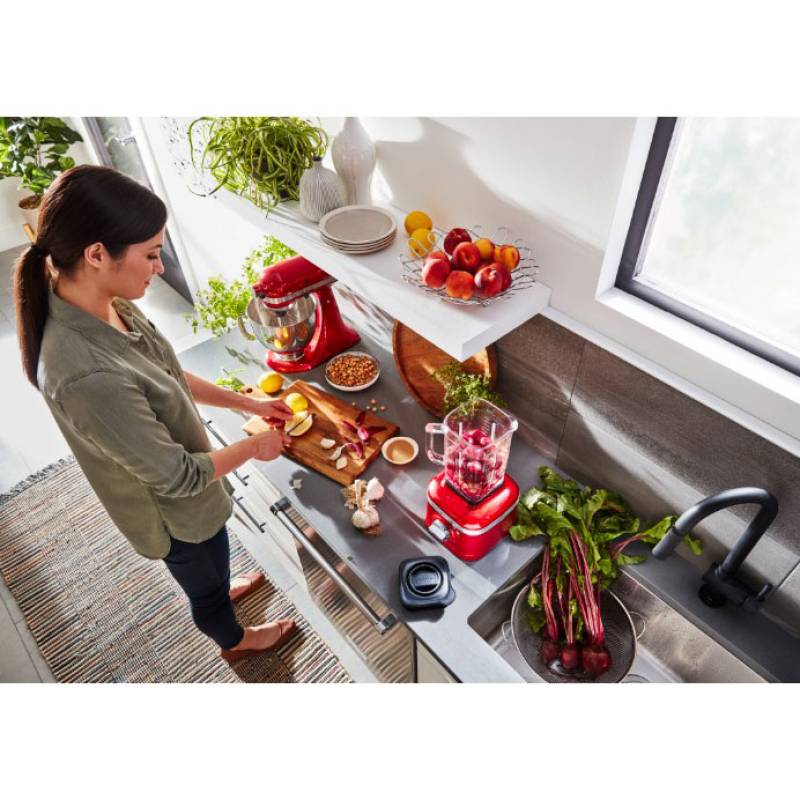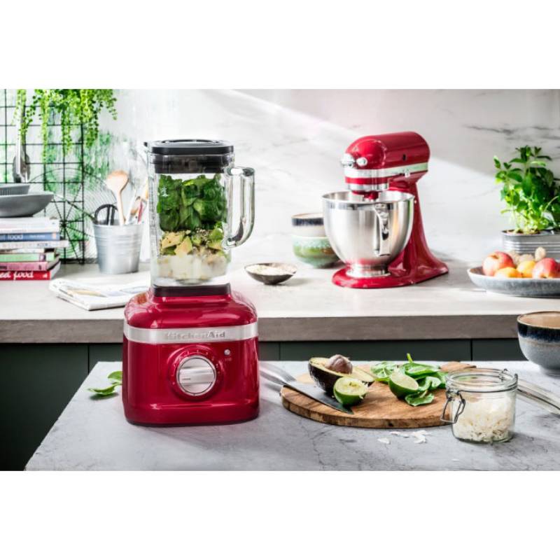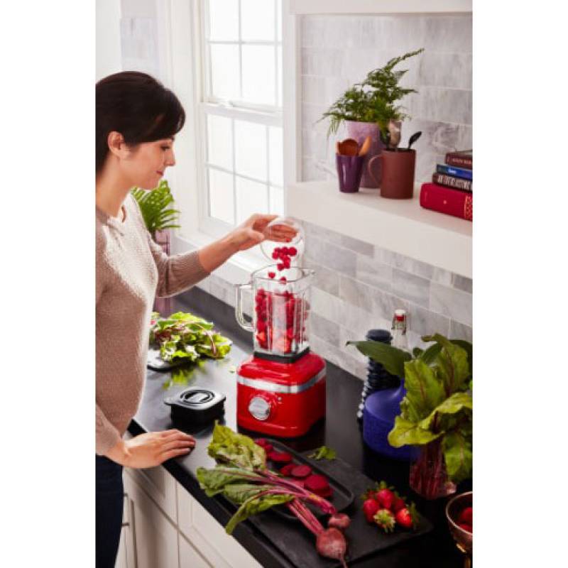 Licuadora con jarra de vidrio (1,4l), color rojo, función pulso, 5 velocidades más 4 funciones preestablecidas: tritura hielo, bebidas heladas, smoothie y ciclo de limpieza. Hecha para durar por su construcción de su base y perilla hechas de metal fundido.