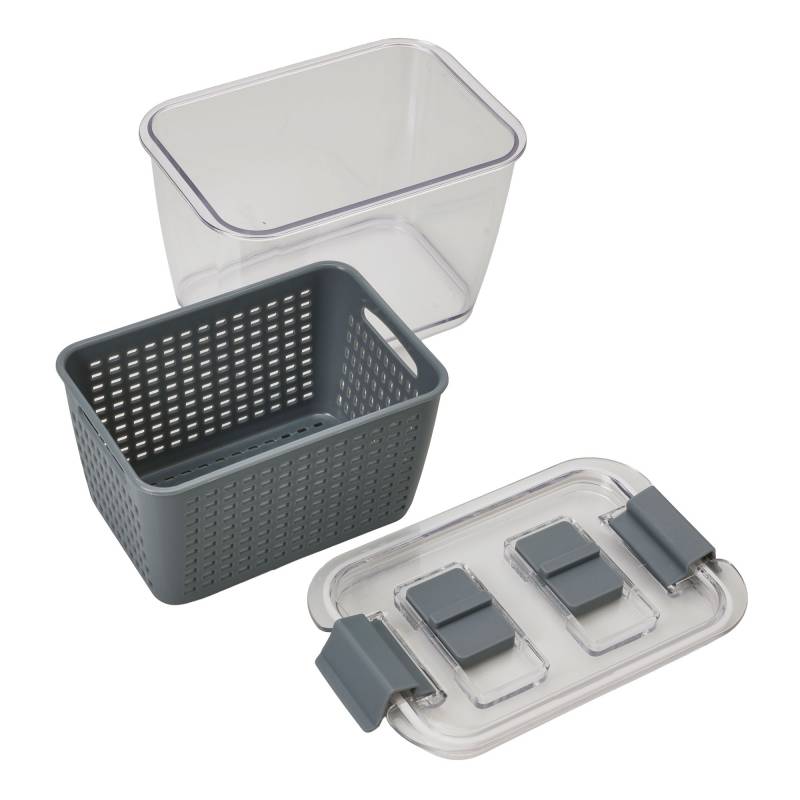 Organizador chico con clip y canasta, práctico para guardar accesorios pequeños. Liviano, resistente y fácil de usar, ideal para mantener espacios ordenados.