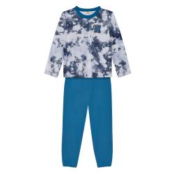 Pijama niño con remera manga larga y estampado batik