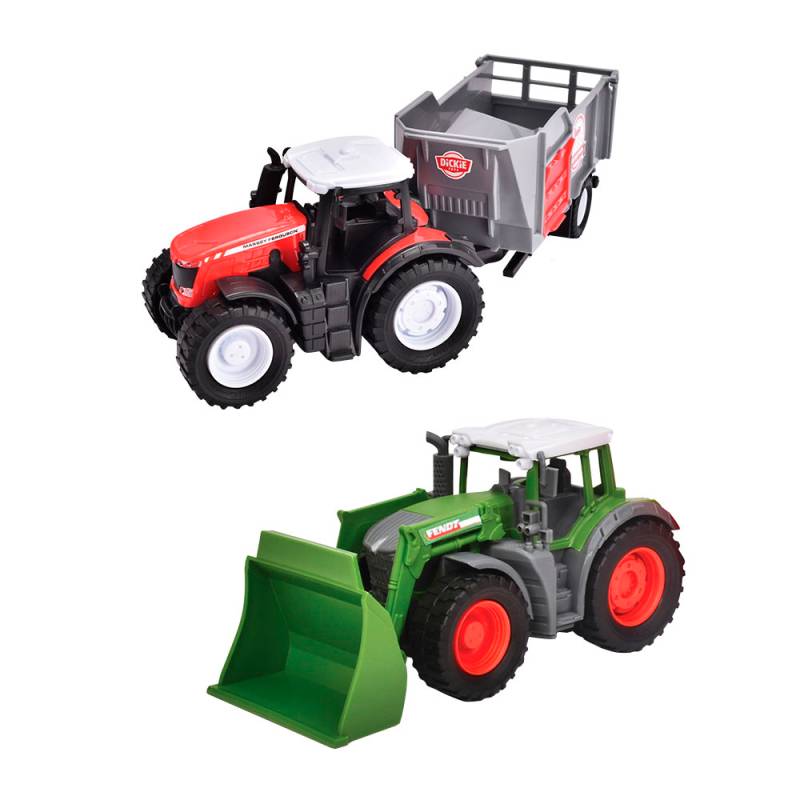 Set de juguete de vehículos de campo de tractor con remolque y pala , diseño original de Fendt y Massey Fergusson. Igual que una granja de verdad. El tractor se acopla con el remolque de leche.También vienen con piezas móviles en la pala móvil para una experiencia aún más realista. Rueda Libre. Medidas15 cm.