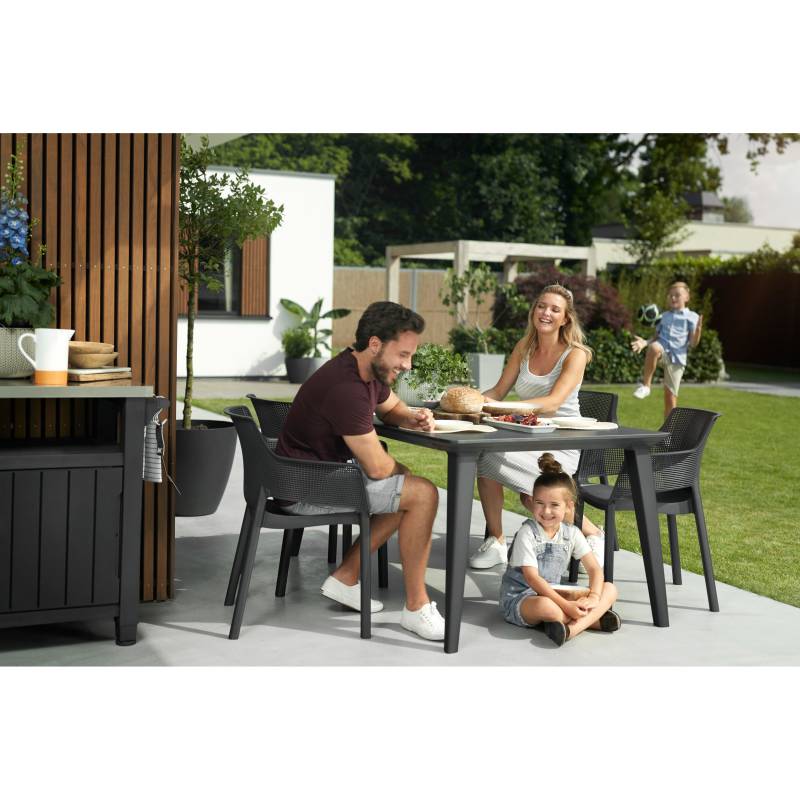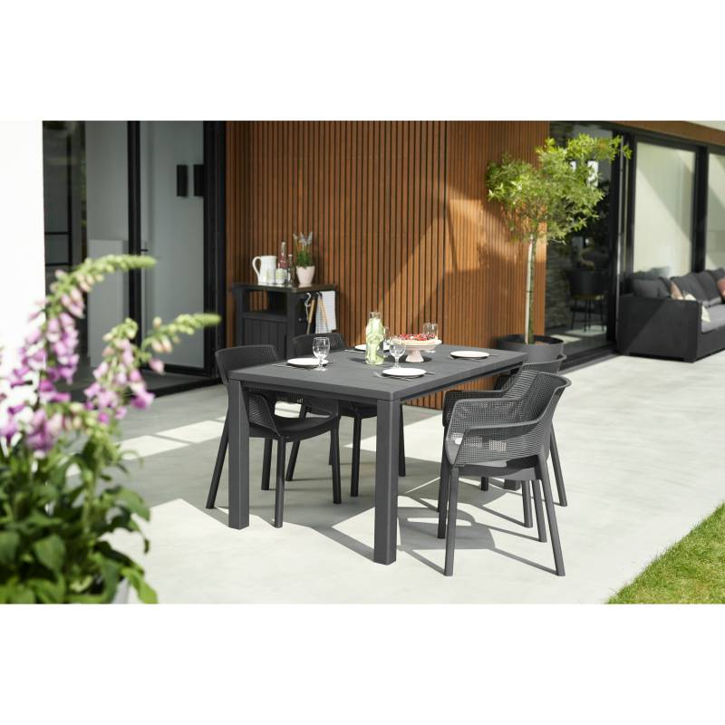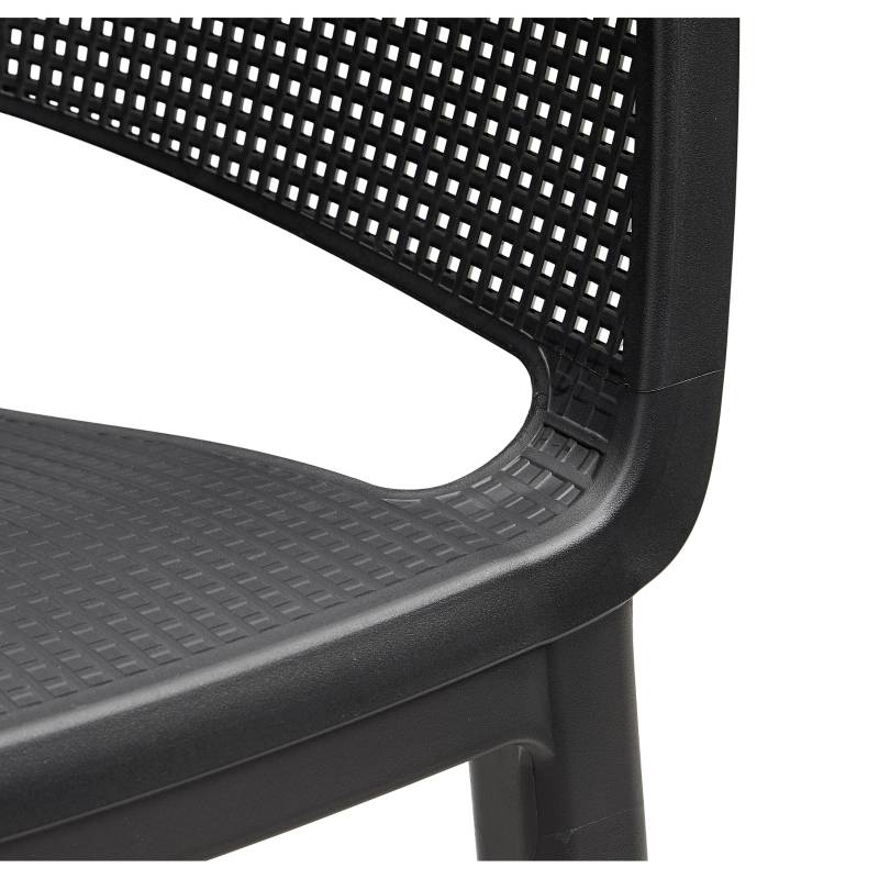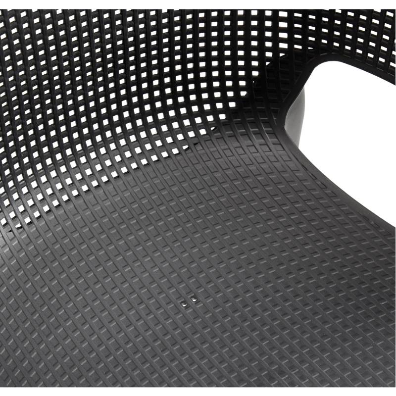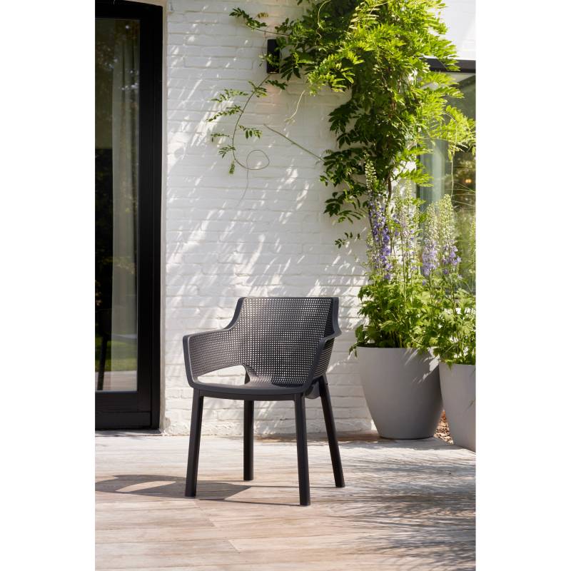 Elisa es una silla moderna y extremadamente cómoda. El respaldo y el asiento perfilados, así como la línea suavemente redondeada de los reposabrazos, son una gran ventaja. Su moderna textura de malla/red es fácil de limpiar y apilable. Ideal para uso en interiores y exteriores.